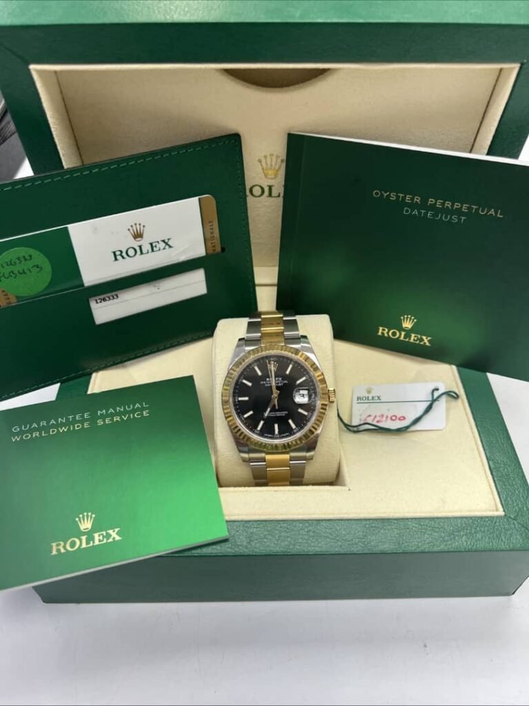 Rolex Datejust 126333 Bracelet Oyster en or et argent avec lunette en or Boîte et carte