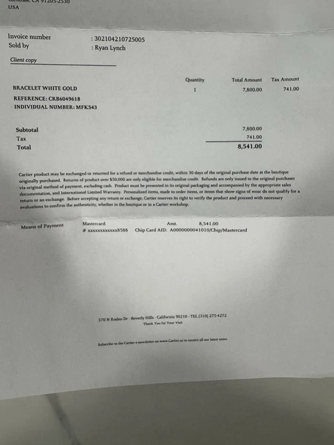 Bracelet cartier authentique en or blanc 18 carats et 4 diamants, taille 18, avec boîte et certificat Le prix initial était : 5,500.00 €.Le prix actuel est : 4,299.00 €.