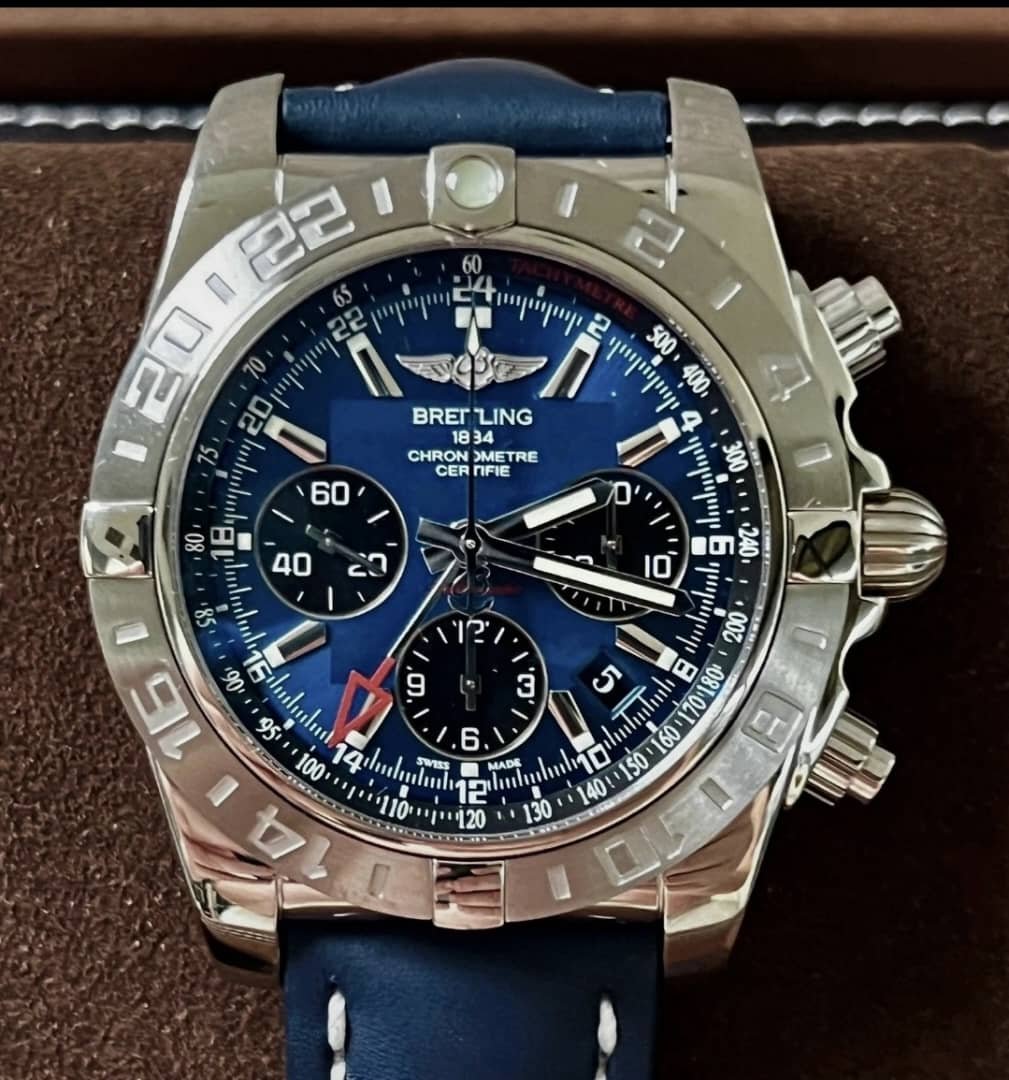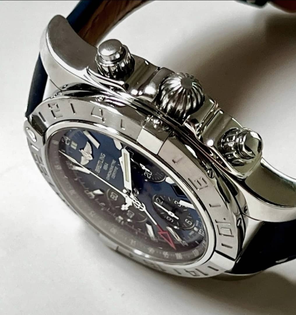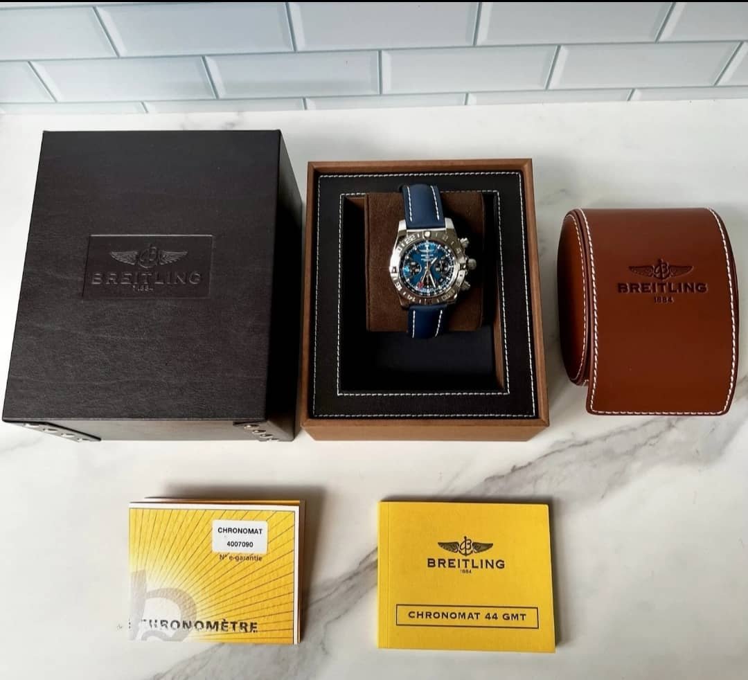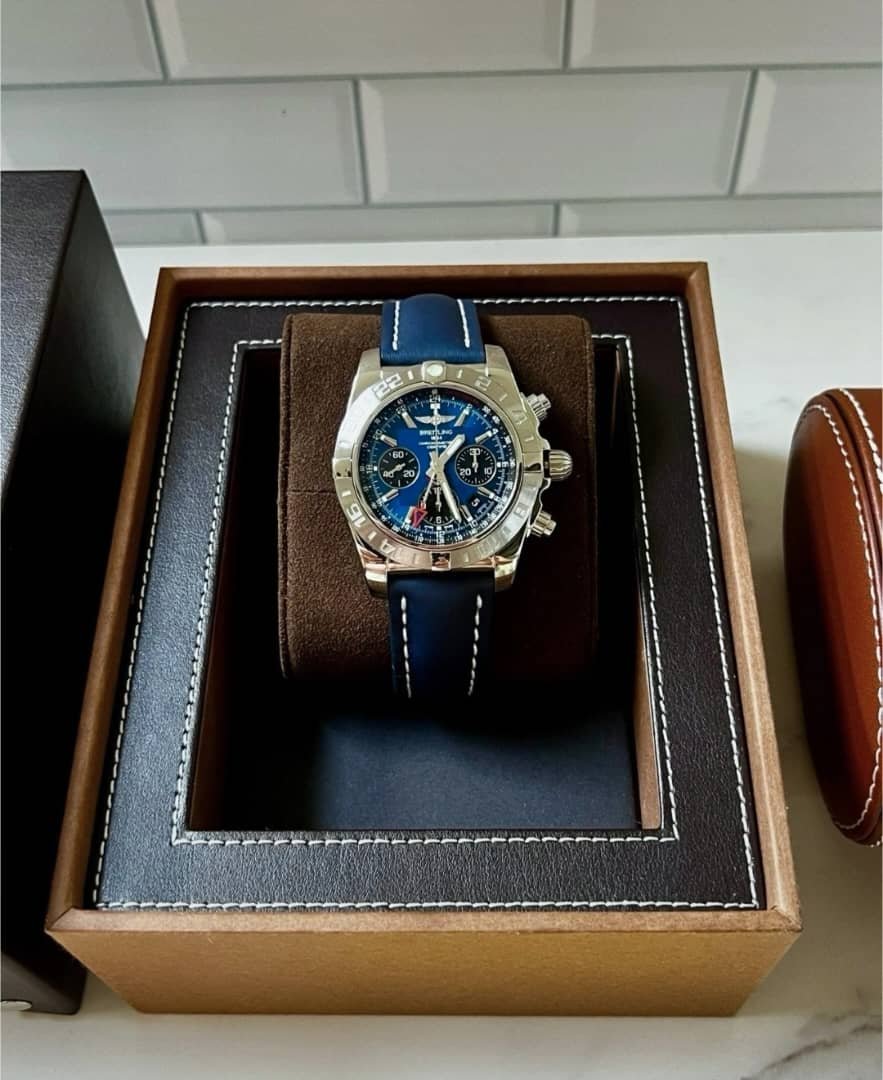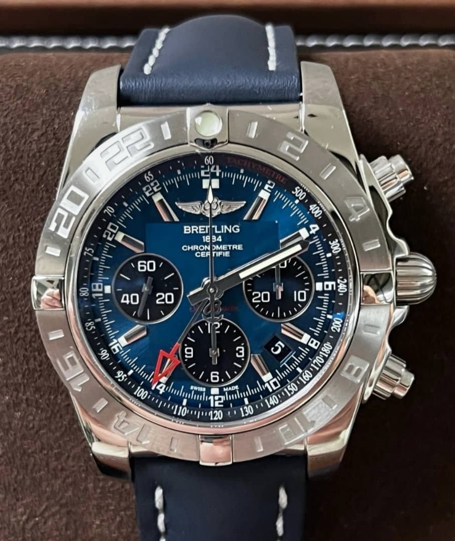 Recensisci per primo “Breitling Chronomat 44 GMT • Cadran bleu Black Eye • Bracelet en cuir bleu ABO42011”