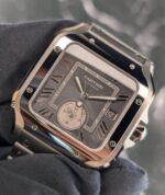 Contenu de la livraison : Double boîte, montre, livrets, carte de garantie, outil de bracelet, bracelet en cuir gris avec boucle déployante