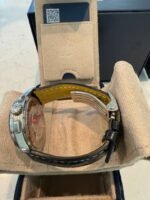 Bracelet en cuir d’alligator – noir, intérieur jaune d’origine, incurvé, boucle déployante, entrecorne 22/18 mm