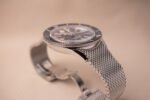 Taille du boîtier : 42 mm x 9,9 mm d’épaisseur x 46 mm d’une corne à l’autre