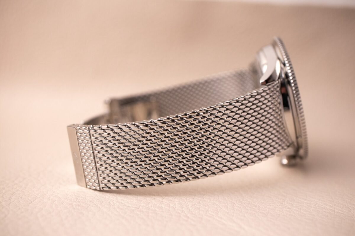 Taille du boîtier : 42 mm x 9,9 mm d’épaisseur x 46 mm d’une corne à l’autre