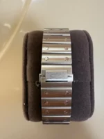 Comme neuf. Aucune rayure, tourbillon, bosse, etc. Portée une douzaine de fois. Conservée dans un écrin à l’abri de la poussière. Ensemble complet. Bracelet en cuir supplémentaire, interchangeable à la main. Parfait état.