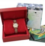Description de l’état : Cette montre d’occasion est en bon état esthétique. Elle fonctionne actuellement. Les fonctions de date ont été testées et fonctionnent. Le boîtier et le bracelet présentent des rayures et des éraflures modérées, typiques d’une montre d’occasion de cet âge. Le verre est en très bon état. Le bracelet est légèrement affaissé. Étant une montre de succession arrivée d’occasion avec un historique d’entretien inconnu, elle nécessitera probablement une révision chez votre horloger local pour une chronométrie fiable à long terme. En raison de l’historique d’entretien inconnu, nous ne pouvons garantir que chaque pièce du mouvement est d’origine