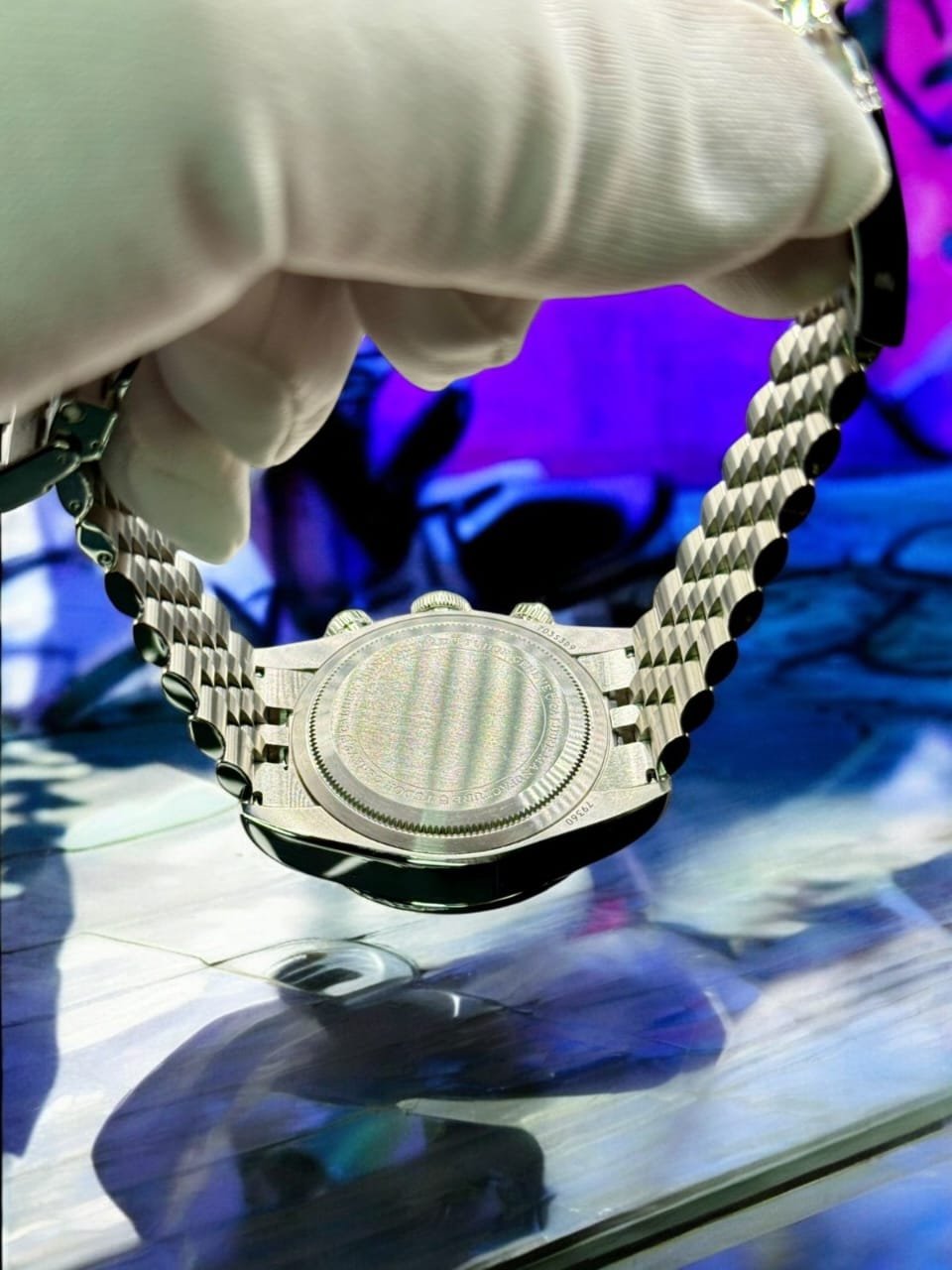 • Caractéristiques: Chronographe, Chronomètre, Indicateur de date, Mains lumineuses, Index lumineux, Multi-clé, Lunette rotative, Cristal de saphir, Petite Seconde, Fabriqué en Suisse, Tachymètre