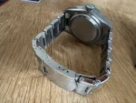 La Black Bay GMT est dotée d’un boîtier en acier satiné de 41 mm, étanche jusqu’à 200 mètres. Des index luminescents sur le cadran noir garantissent une lisibilité optimale de nuit, quelles que soient les conditions. Le cadran affiche une mention GMT à 6 heures.