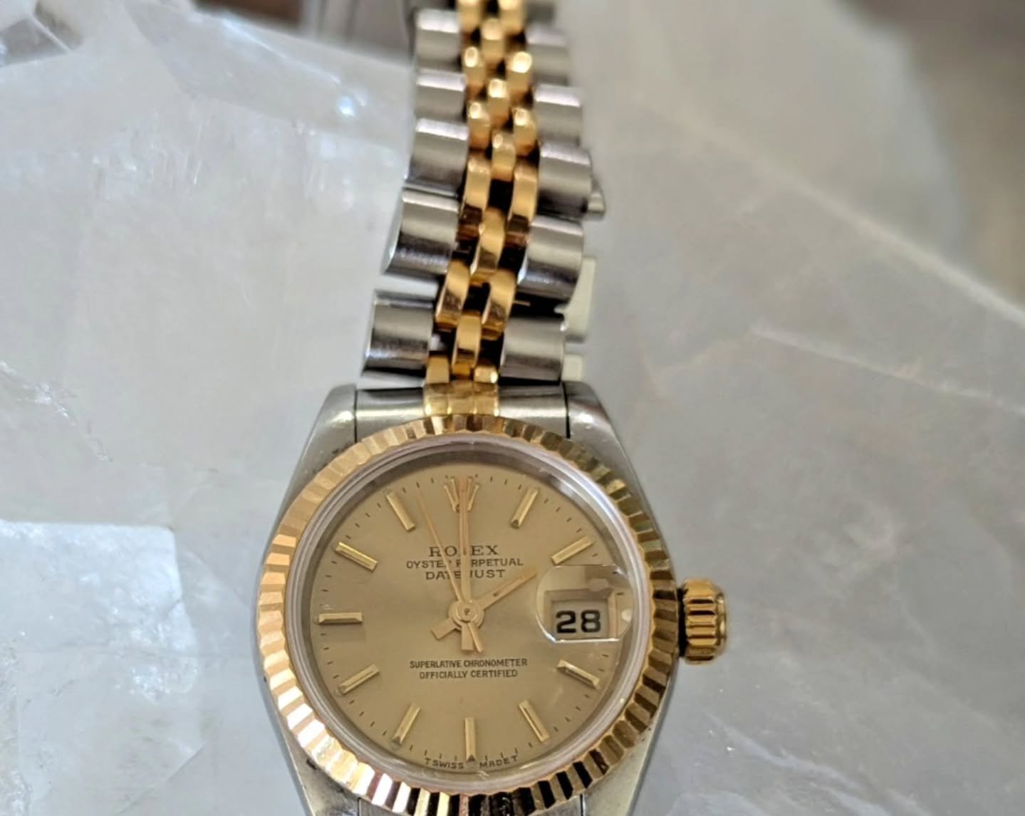 Matériau du bracelet : acier inoxydable bicolore et or 18 carats