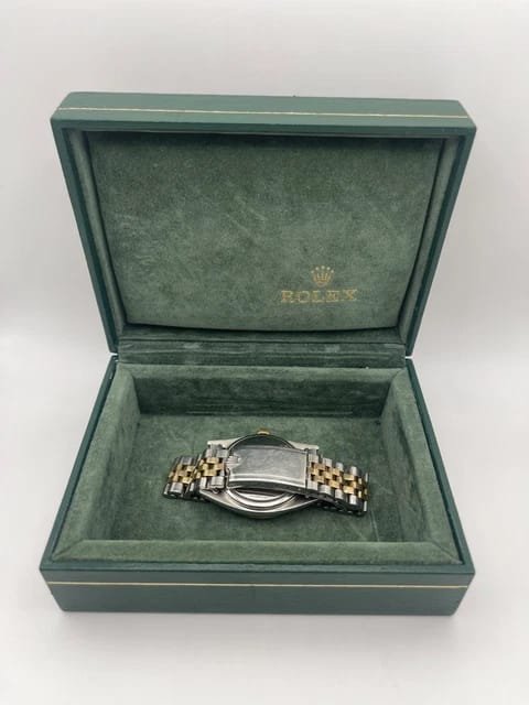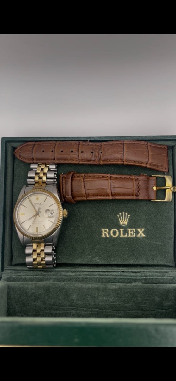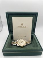 Cette Rolex Oyster Perpetual Datejust 1601 pour homme est une montre-bracelet de luxe des années 1960 dotée d’un mouvement mécanique à remontage automatique. Elle est dotée d’une boucle déployante à double verrouillage, d’une étanchéité jusqu’à 100 mètres et d’un bracelet multicolore en acier inoxydable. Elle est livrée avec son écrin d’origine, ses papiers et est équipée d’une seconde centrale, d’un indicateur de date, d’un chronomètre et de plusieurs aiguilles. Avec son emblème Rolex, cette montre incarne un style intemporel et sophistiqué, un véritable bijou pour tout collectionneur ou amateur de montres