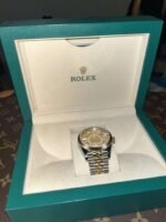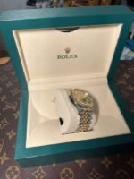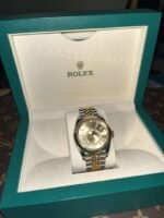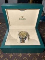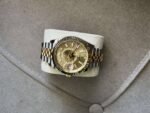 Matériaux Rolesor jaune = combinaison d’acier Oystersteel et d’or jaune 18 ct (lunette cannelée en or, couronne, certains maillons du bracelet)