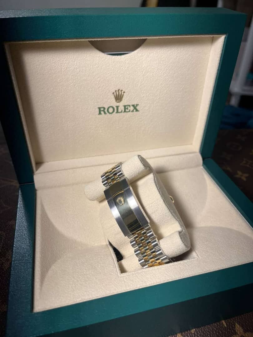 Bracelet Versions disponible en Jubilee ou Oyster, en acier + or jaune, avec fermoir Oysterclasp ou Oysterlock selon les versions + système d’extension / confort (« Easylink » ~5 mm) pour ajuster la longueur.